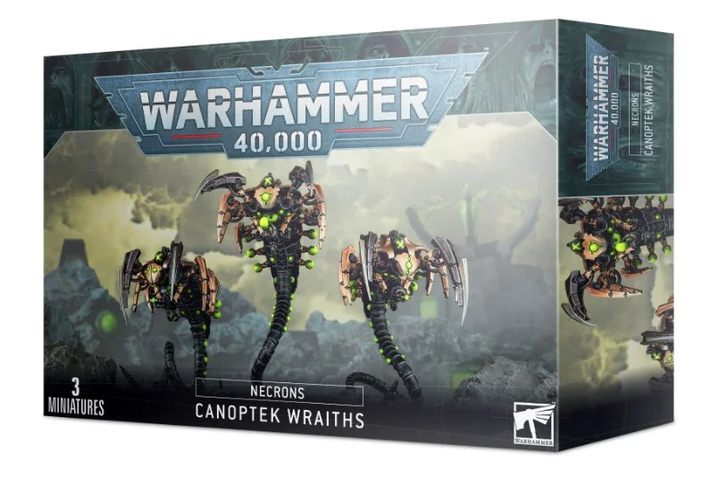 This multi-part plastic boxed set contains 135 components with which to build 3 Necron Canoptek Wraiths. This set comes with 3 Citadel 50mm Round bases.