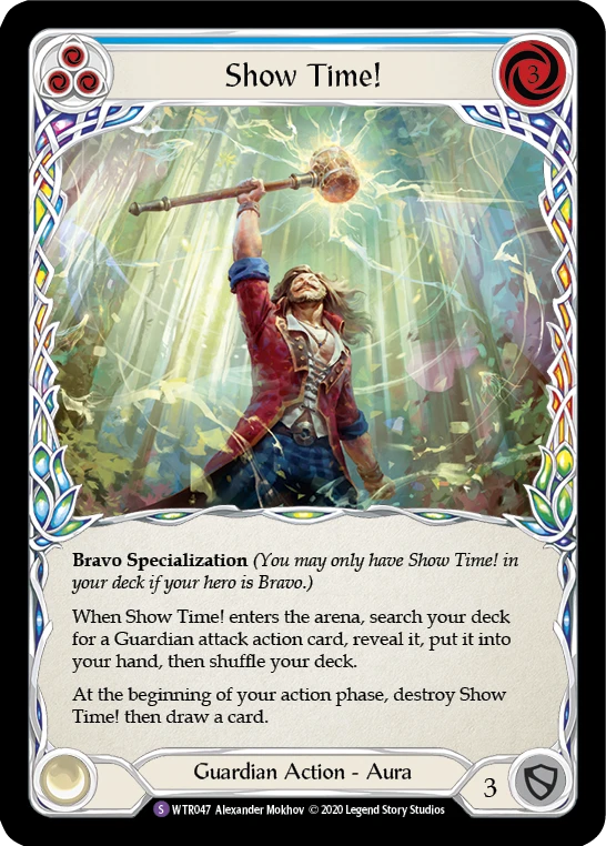 When Show Time! enters the arena, search your deck for a Guardian attack action card, reveal it, put it into your hand, then shuffle your deck.